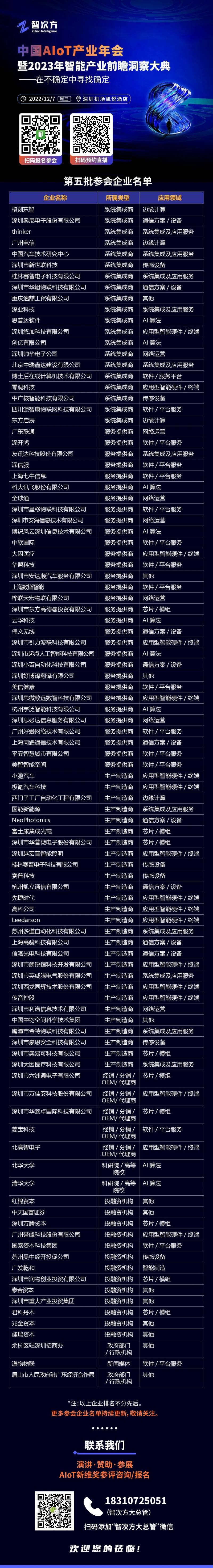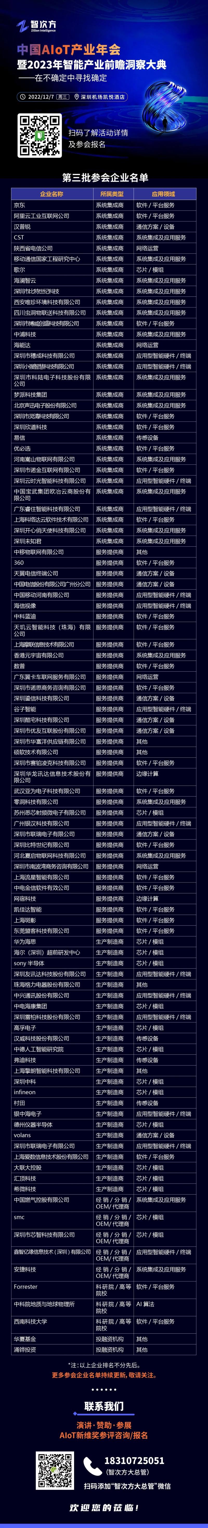 年尾将至,由智次方·物联网智库与挚物产业研究院主办的以”在不确定中寻找确定“为主题的“中国AIoT产业年会暨2023智能产业前瞻洞察大典”将于12月7日在深圳机场凯悦酒店盛大开幕。