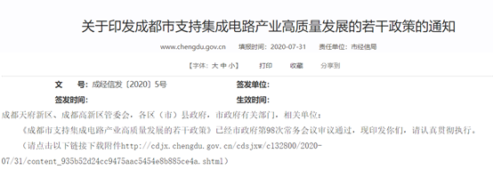 日前,成都市经济和信息化局、成都市财政局联合出台了《成都市支持集成电路产业高质量发展的若干政策的通知》(以下简称《通知》)。以推动成都市集成电路产业转型升级,提升电子信息产业核心竞争力。