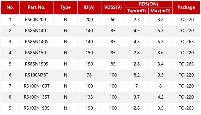 根据电动车控制器对MOS管的需求,推荐瑞森半导体低压MOS-SGT系列。其产品具有参数一致性高、抗冲击能力强等特点,在堵转等恶劣工况过流条件下仍能稳定工作,为电动车驾乘提供有力保障。