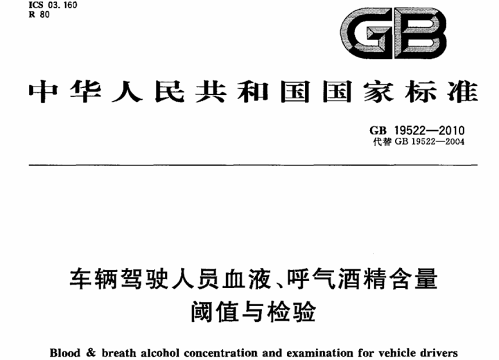 关于酒驾(饮酒驾驶)、醉驾(醉酒驾驶)的鉴定,我国在《车辆驾驶人员血液、呼气酒精含量阈值与检验》(GB19522-2010)有明确标准:
