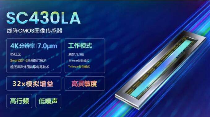 思特威(上海)电子科技股份有限公司(股票简称:思特威,股票代码:688213),重磅推出首颗LA(Linear)线阵系列4K分辨率高速工业CMOS图像传感器——SC430LA。该背照式(BSI)图像传感器搭载创新的SmartGS®-2全局快门技术,依托思特威先进的模拟电路设计,支持出色的Trilinear彩色模式和32x模拟增益,集高稳定性、高精准度、低噪声、高行频四大性能优势于一身,可适用于各种工业环境中,以高传输速度和高图像品质赋能全天候工业线阵相机。