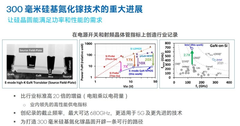 为打造300毫米硅基氮化镓晶圆(GaN-on-silicon wafers)开辟一条可行的路径,从而让世界离超越5G和电源能效问题的解决更进一步,是另一项值得关注的创新。数据显示,该技术的截止频率最高可达680GHz,实现了比行业标准高20倍的增益,并在高性能供电指标上打破了行业记录,非常适合5G基站、多天线阵列电源管理、电动汽车大电流高速充电等应用。同时,由于基于硅基衬底制造,这和目前我们所熟知的300毫米硅晶圆生产流程兼容,更便于生产工艺导入。
