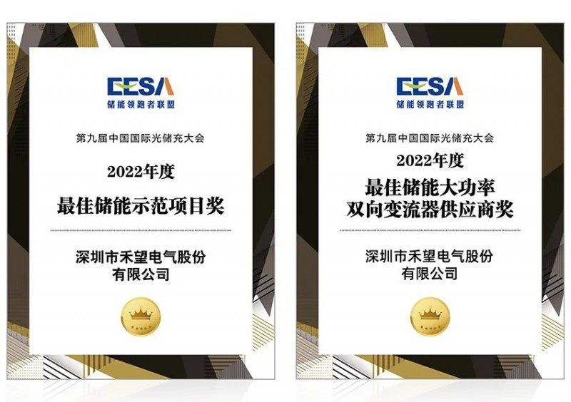 除了荣获“2022中国储能行业十佳PCS供应商”奖项外,禾望不久前还荣获了两项重磅荣誉,进一步展现了自身的强劲实力。近期,由储能领跑者联盟主办的“第九届中国国际光储充大会”在上海嘉定成功举办。会议以专题形式深入剖析行业问题,与行业的学术专家和大咖一起探讨、碰撞,为行业发展献策建言,助力储能行业的健康向上发展。此次会议上,禾望以优异的表现荣获“2022年度最佳储能大功率双向变流器供应商奖”和“2022年度最佳储能示范项目奖”两大奖项;两大奖项不仅代表了行业对禾望储能产品和项目的充分肯定,更是对禾望储能产品助力双碳,打造新型电力系统的激励与期待。