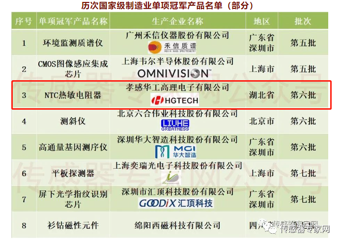 华工科技旗下子公司孝感华工高理,是中国温度传感器龙头企业,是国内少数掌握热敏芯片制造和封装工艺核心技术的企业。其生产的NTC热敏电阻器(温度传感器),被认定为国家级制造业单项冠军产品。
