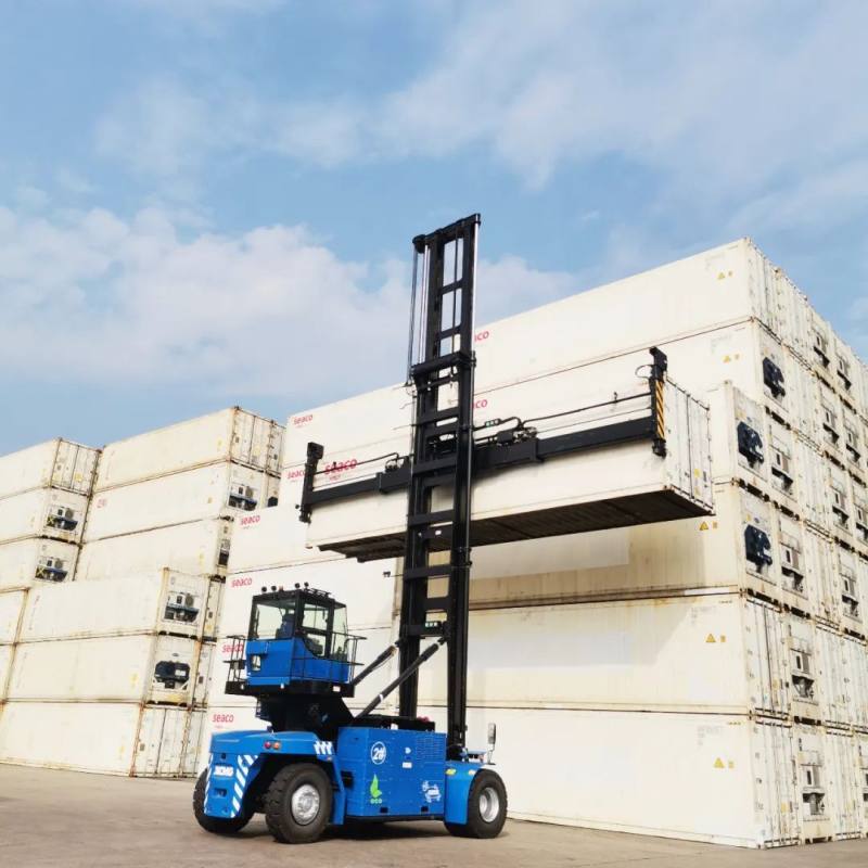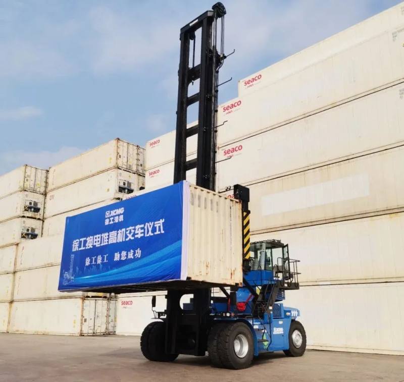 XCH908E2换电堆高机可用于集装箱空箱装卸、场地转运及堆垛作业。该客户在选择新能源港机时,第一时间选择了徐工设备,并对此满怀信心道:
