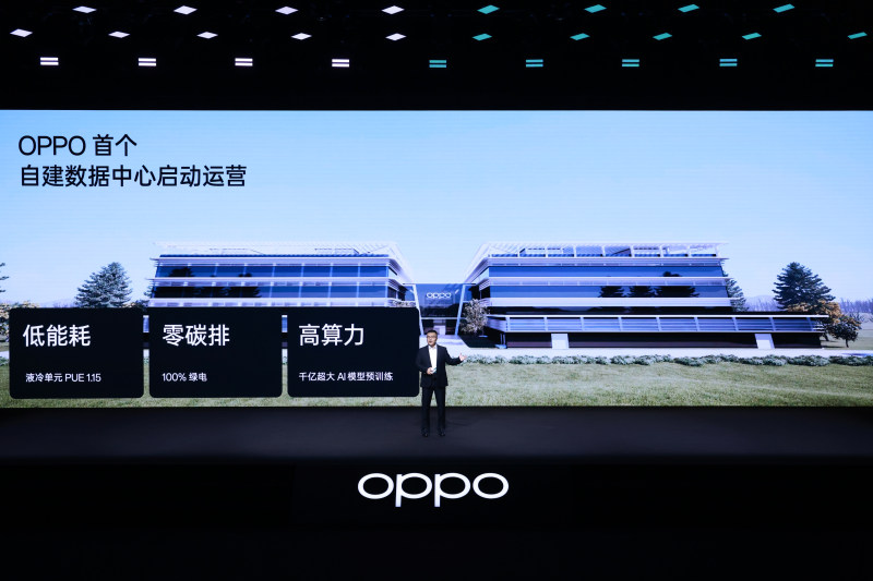 在基础设施(IaaS)层,是全球混合云基础设施。2022年OPPO全球首个自建数据中心投产使用,位于东莞的OPPO智能云(大湾区)数据中心创新性实施全链路减碳方案,实现100%绿电,整体零碳排;液冷单元PUE低至1.15;采用先进GPU训练集群和互联架构,可支撑千亿超大模型预训练。