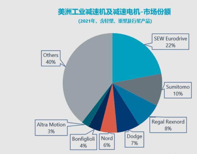 考虑到交易双方在减速机市场的重要影响力,此次收购对Regal Rexnord来说具有战略性意义。尤其是在轻型减速机市场,Regal与Rexnord合并后,Altra是其在美国本土品牌中的主要竞争对手。Altra旗下拥有四个减速机品牌,涵盖各种主流轻型产品,例如斜齿轮、锥齿轮和蜗轮蜗杆减速电机,并提供食品等特定行业需求的不锈钢减速机。据Interact Analysis测算,2021年,Regal Rexnord在美洲轻型减速机市场排名第五,而 Altra紧随其后,排名第六。此次收购后,在该细分市场与Regal Rexnord直接竞争的美国本土大牌将仅剩Dodge一家。