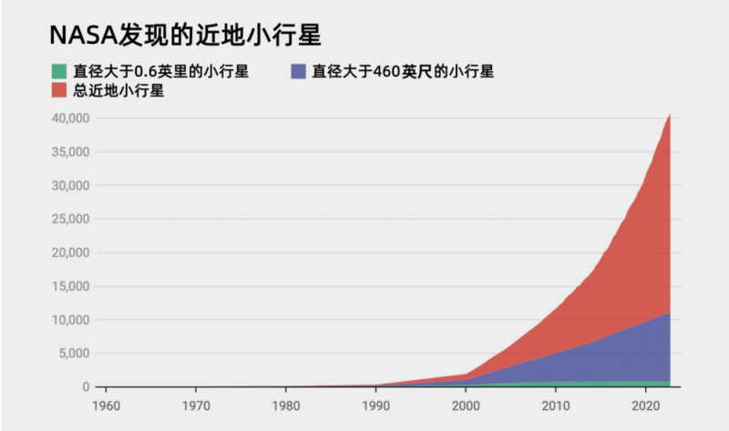 NASA发现的近地小行星统计。(图/The Conversation, source from NASA, JPL)