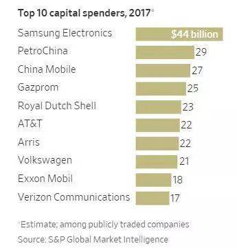 三星电子既是全球第一大半导体买家,也是第一大半导体卖家,而且这种趋势还有延续下去的可能。三星电子2017年资本支出更是在全球所有公司中雄踞榜首,达到了惊人的440亿美元,其中约有260亿投入到半导体当中,分别是英特尔和台积电2017年资本支出的两倍以上。