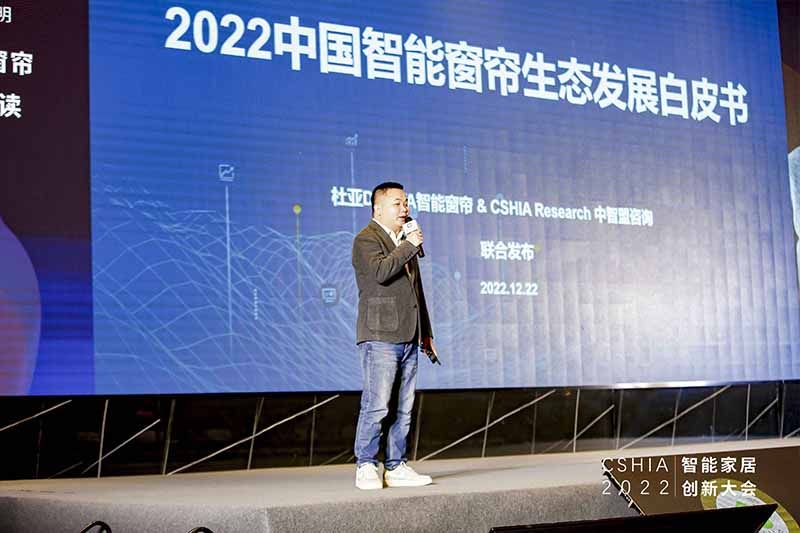 杜亚中国区IoT事业部总经理王艳明先生带来了题为《2022中国智能窗帘生态发展趋势解读》的分享。2022年,杜亚智能窗帘联合“CSHIA Research 中智盟”咨询编撰完成了《2022中国智能窗帘生态发展白皮书》,对智能窗帘的新发展和新应用作出全角度解析,推动泛家居产业对智能窗帘品类的认知,为智能空间功能打造,以及场景融合提供新思路。