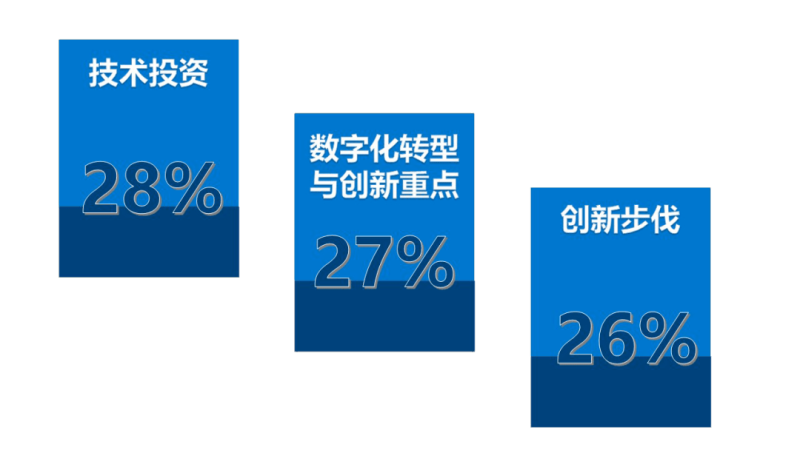 调查要求每位受访者考虑14个问题,并从中选出他们最常与高管同事讨论的3项议题, 排名靠前的结果都与技术和创新有关: