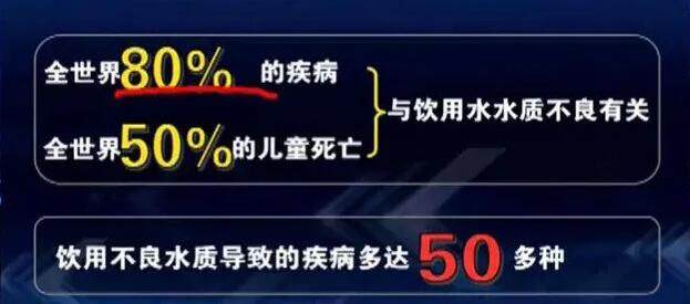 水就像人体内大大小小的河流,河道干枯了、堵塞了、污染了、河流就会丧失运载航船的能力。所以,世界卫生组织告诉我们:人类80%的疾病都与水质有关。