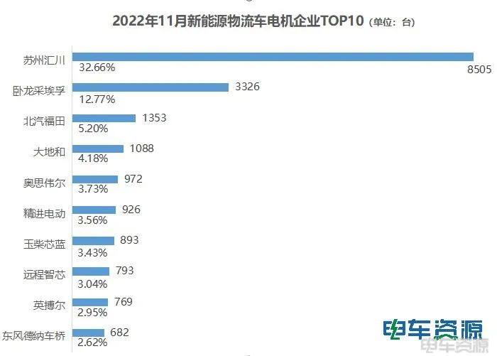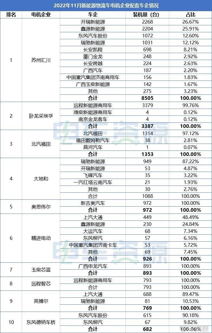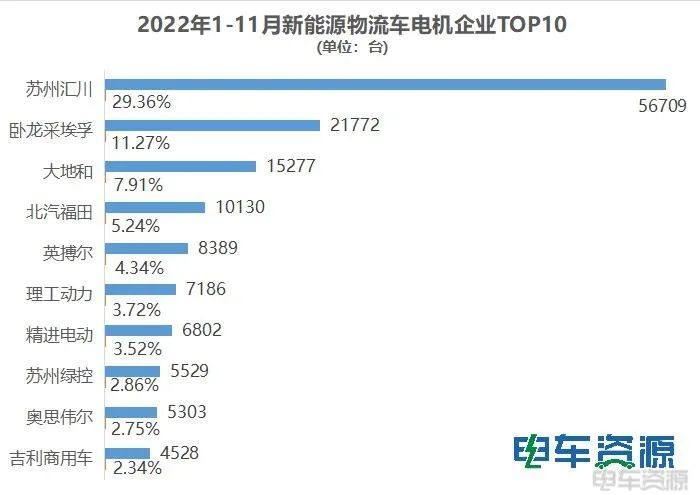 根据数据,电车资源统计了2022年1-11月新能源物流车电机的市场情况。