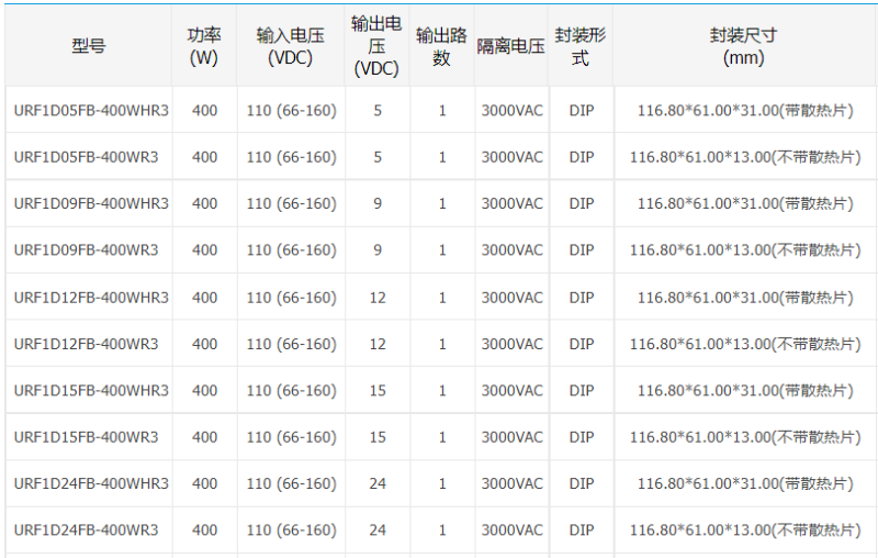URF1D_FB-400(H)WR3系列工作温度范围宽至-40℃ to +100℃,具有优异的温度降额曲线,带来的器件发热量低,大大提升产品的寿命和可靠性。