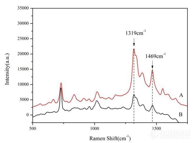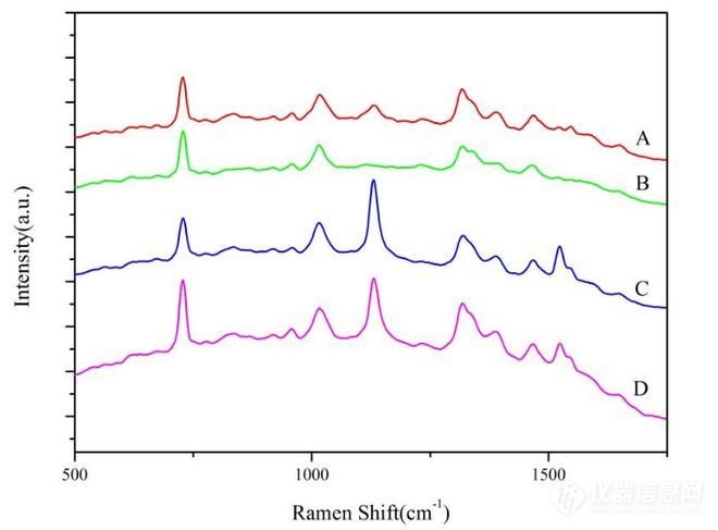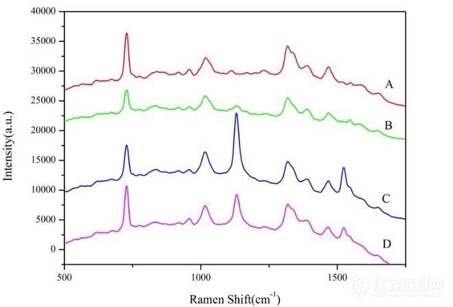 图1 不同拉曼基底的虫草素拉曼光谱图