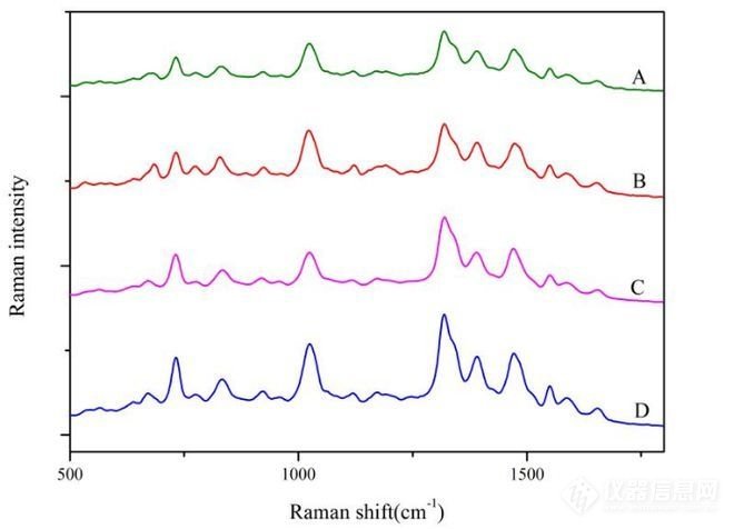 图5 不同预处理得到蛹虫草1号样品的拉曼光谱图