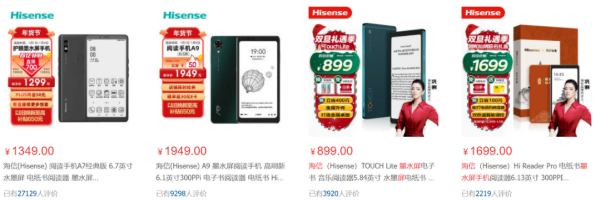 目前海信卖得比较好的是A7这款墨水屏,在京东已经有2万+的销量了,且最近新出的这款产品销量也已经超过了2千+。可以看到的是,墨水屏手机在不断优化的过程中,增强的是阅读交互,减少了一些显示屏手机更得出众的功能,比如摄影摄像,逐渐趋于智能化阅读器。