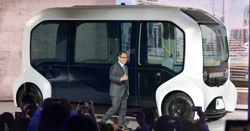 丰田开发的自动驾驶EV“e-Palette”。完全自动驾驶还无法实现,但与传统的公交车和班车相比,外观设计有了很大的改变,没有驾驶座 。资料来源:丰田新闻稿