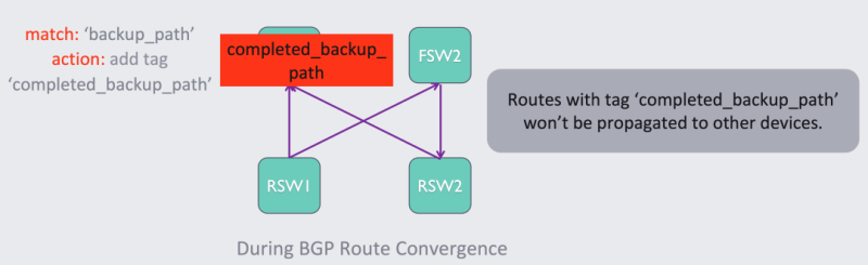 参见图6,带有“backup_path”属性的路由到达fsw1以后,会加上“completed_backup_path”属性,其本质就是BGP的知名Community“no-advertise”的属性,所以fsw1不会再次广播给任何BGP邻居。