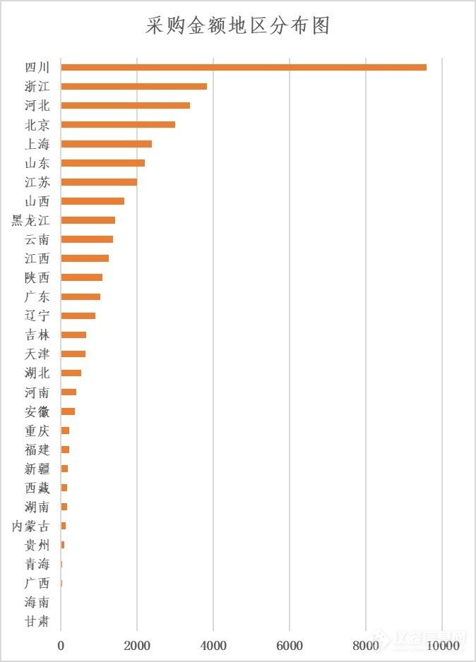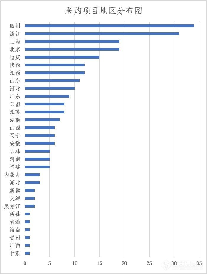 采购地区分布:四川项目最多,浙江紧追其后