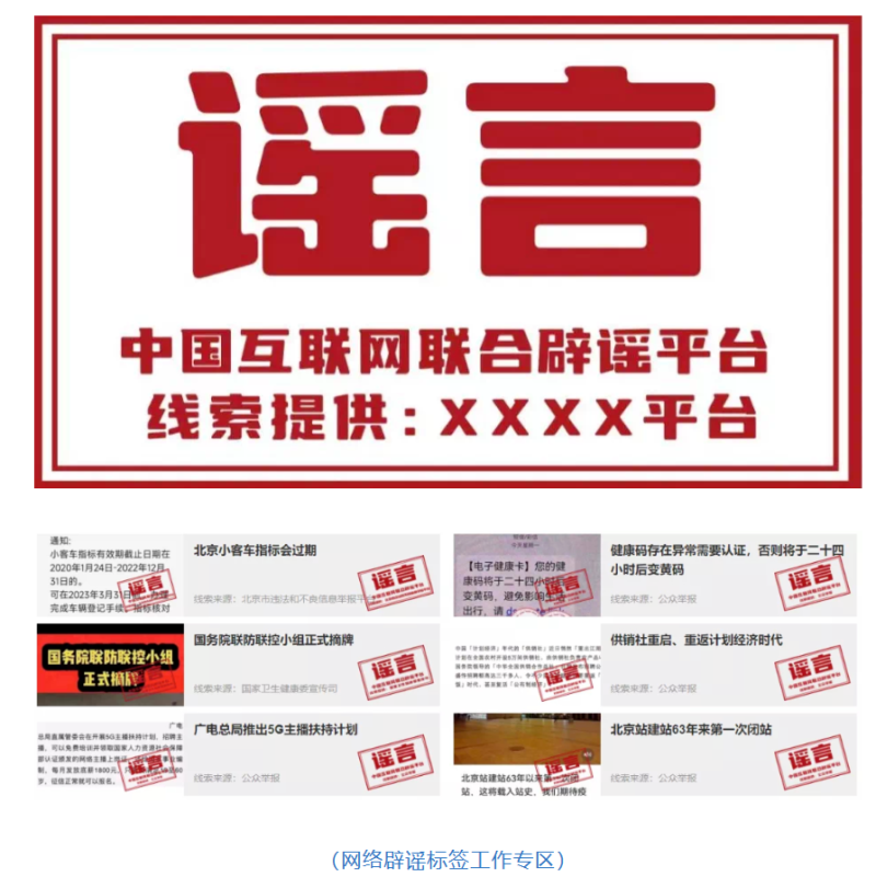 中央网信办举报中心表示,网络辟谣标签工作启动以来,举报中心加强受理网民举报及网站平台提供的谣言线索。针对“国务院联防联控小组正式摘牌”“飞机喷洒打药全城消杀”“疫情期间每天可领取补贴”“国家要求快递业 1 月 8 日停业”等网络谣言,会同人社部、国家卫健委、国家市监总局等部门及地方网信举报机构进行权威查证,依托中国互联网联合辟谣平台“网络辟谣标签工作专区”及时发布辟谣标签予以集中曝光。