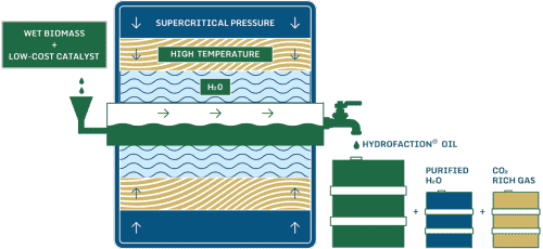 水热液化 (HTL) 应用超临界水作为反应介质,将生物质直接转化为高能量密度的可再生生物原油。Steeper 的工艺通过使湿生物质经受高温和高压来模拟和加速自然。工艺条件经过精心选择,以促进有利于高产优质可再生油的反应途径。