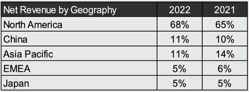 从营收分布上看,2022年台积电营收有68%来自于美国的,高于2021年的65%。其它地区只有中国大陆增加了1%,余者都有所减少。