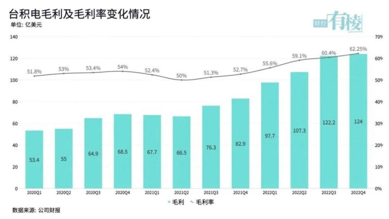 台积电整体毛利率自2020年以来,始终保持在50%以上,本季度达到了62.25%。相比之下,海外毛利率相当于“腰斩”。