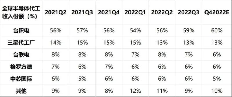 据Counterpoint Research数据,2022年,台积电市场份额从第一季度的54%增长到第四季度的60%,而其主要竞争对手的市场份额持平或下降。