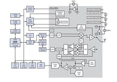 凌力尔特的粉尘网络智能网格?产品线包含符合 WirelessHART 和 6LoWPAN 标准的 IPv6 产品,这些产品利用 802.15.4 提供市场上最可靠、功耗最低的 WSN 解决方案。尘埃网络永恒?微尘(LTC5800 系列)是单芯片器件,可将 Cortex-M3 微处理器、存储器和外设耦合到目前功耗最低的 802.15.4 无线电(图 5)。设计人员在其传感器封装中嵌入微尘,并可以依靠网络来形成、优化传感器数据并将其传输到其应用中。Dust Networks 管理器允许从数十台设备优雅地扩展到数千台设备,为网络提供数据和配置接口。这两个产品系列均构建了高度可靠的多跳网状网络,能够实现每个节点的可配置数据速率。它们适用于解决各种 WSN 问题。使用灰尘的一些应用程序示例??微尘和管理器包括: