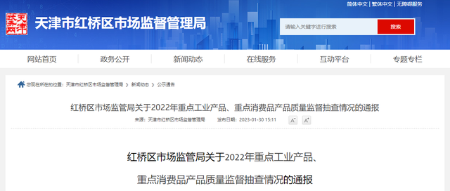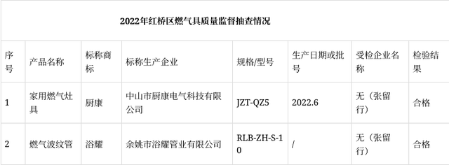 2023年1月30日,天津市红桥区市场监管局通报2022年重点工业产品、重点消费品产品质量监督抽查情况。本次对红桥区1家燃气具经营单位开展监督抽查,共抽查产品2批次,经检验全部合格。