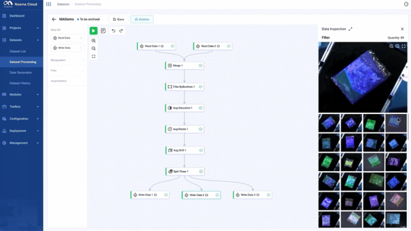 有了手和臂后,非夕还发布了完整的通用“大脑”——穹知NOEMA系统,包括了穹知云平台、穹知边缘系统和穹知边缘控制器。用户可以非常轻松地进行AI模型的开发和解决方案的全生命周期管理,包括数据治理、模型训练、算子编排、方案部署,和维护调试等功能。