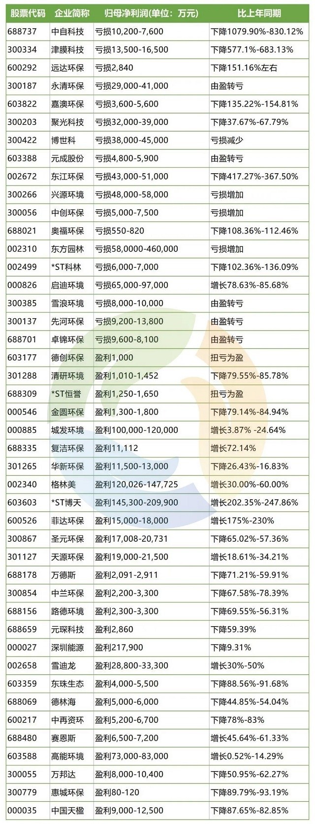 ▼附:44家环保上市公司2022年业绩预报整理(截止2023年1月31日)