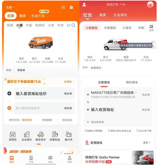 但是,和货拉拉或者滴滴货运的直接对比中,快狗打车在产品层面仍存在提升空间。