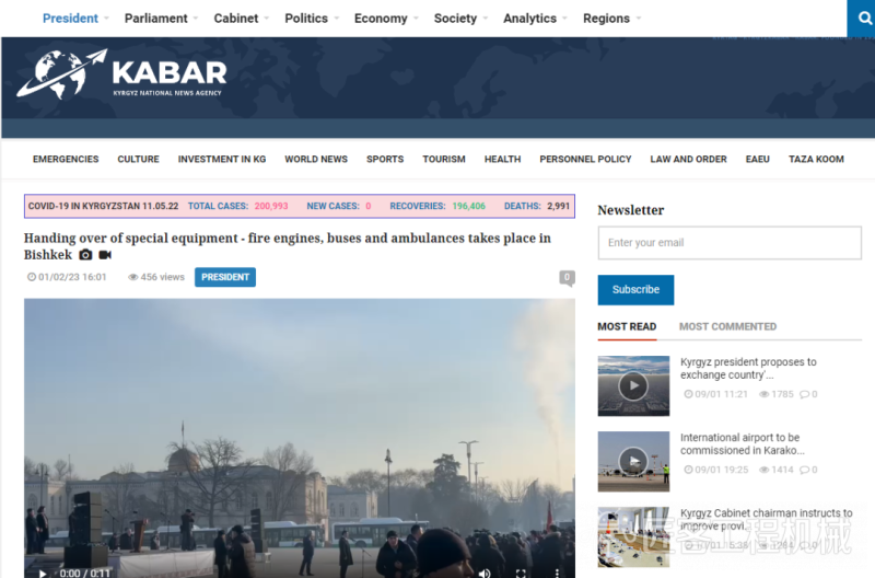 此次中方向吉方援助的包括徐工抢险救援消防车、重型泡沫消防车、50米云梯消防车等100台消防车辆及各类消防物资,受到当地主流媒体高度关注。