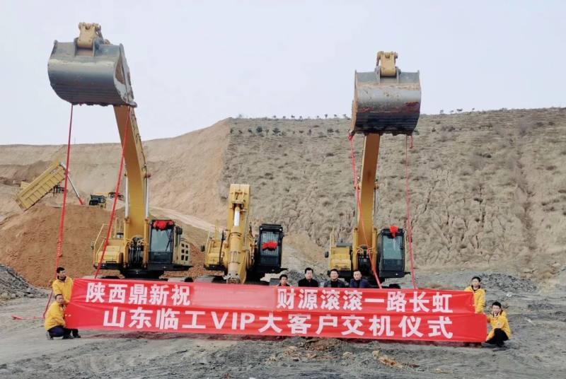 交机仪式上,临工经销商、客户与周边行业大客户前来现场见证。仪式上,该客户现身说法,向朋友们强力推荐临工大挖,有效提高了临工品牌在当地的影响力。