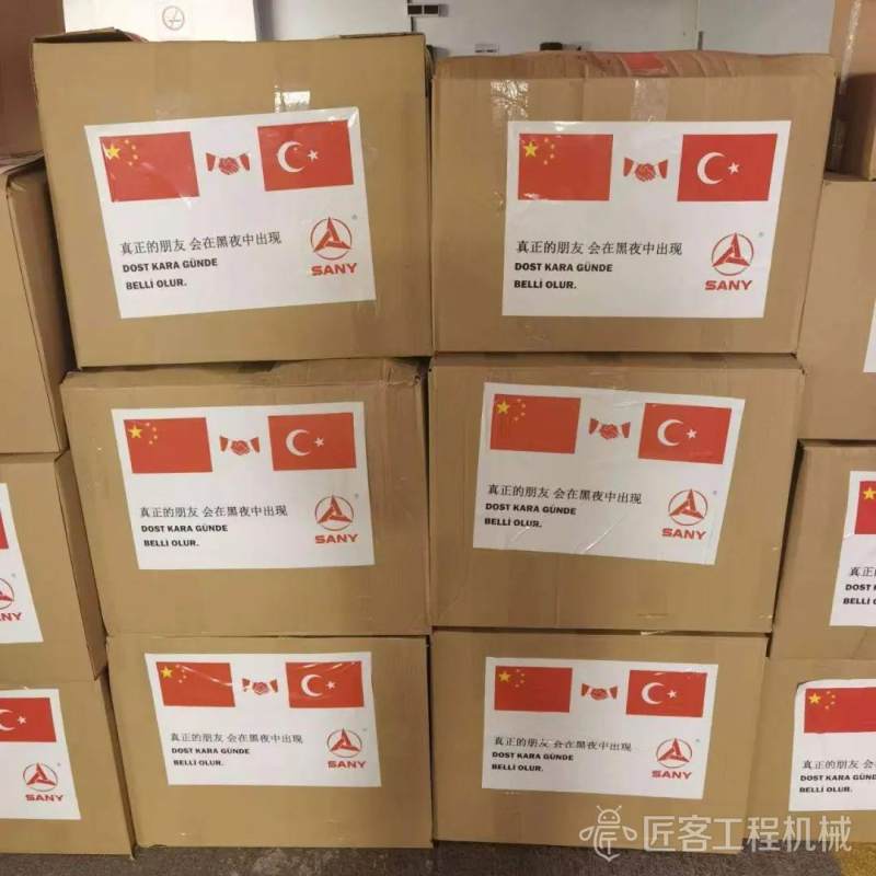 在三一捐赠给当地的物资包装箱上,印有一句土耳其谚语:“Dost kara günde belli olur真正的朋友会在黑夜中出现”。作为一家国际化的中国企业,三一集团万里驰援只为生命至上,于患难处伸援手、现真情,携手共筑人类命运共同体!
