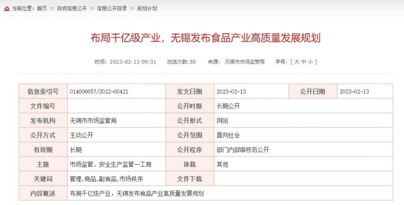 围绕转型升级传统食品产业、加速壮大健康食品产业和前瞻布局未来食品产业三大重点领域,高点定位、为千亿级食品产业谋篇布局,无锡市食品安全委员会发布了《无锡市食品产业高质量发展规划(2023-2025年)》。