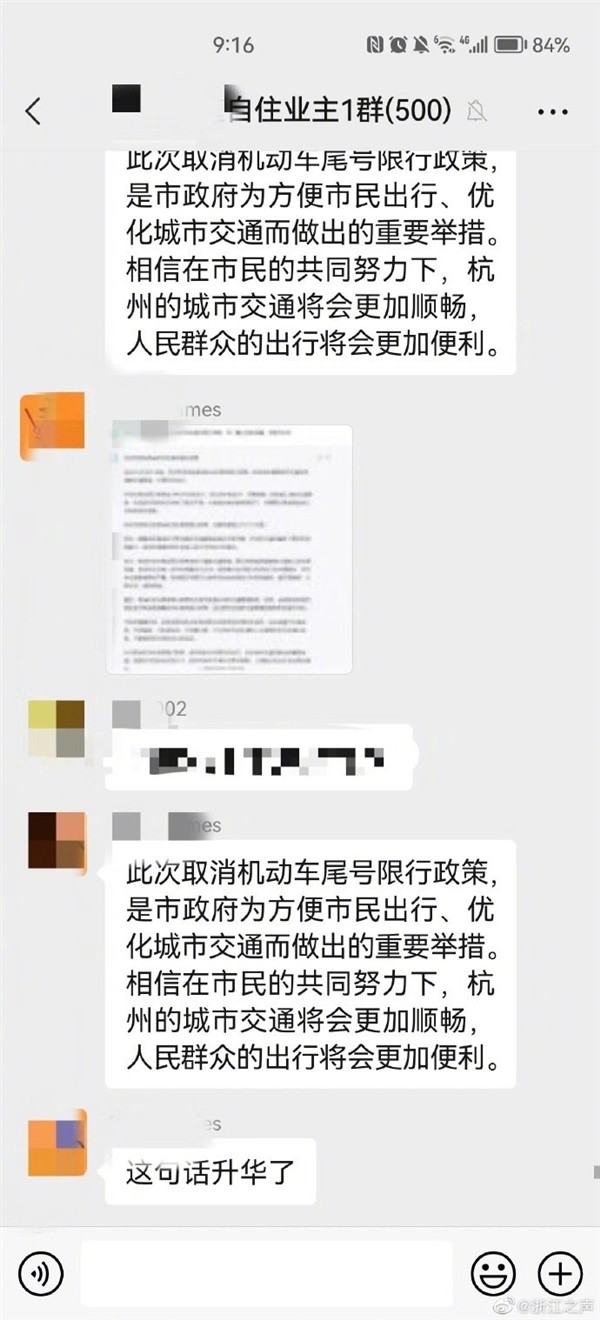 据了解,警方已介入调查,涉事业主也在群里公开道歉,截至目前,杭州相关政府部门均没有发布此类政策。
