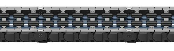 轮式拖链的第二个发展阶段,所有重要节点都得到了加强。就这个重载型版本来说,孔销连接扩大了100%,接触面大小增加了30%以上。正因如此,预计使用寿命相比之前的版本翻了一倍。