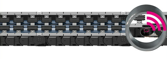 易格斯轮式拖链的最新发展阶段,在轮式链节中使用了免维护的滑动轴承,有效延长使用寿命。作为可选项,还可以配备i.Sense状态监测系统,可靠预测系统的预期使用寿命。和第一阶段的轮式拖链相比,现阶段的拖链使用寿命已经延长了三倍多。