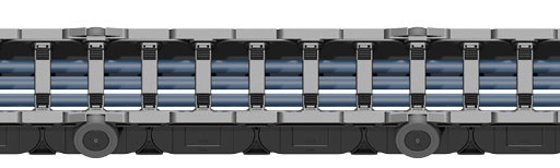相较于普通的拖链系统,轮式拖链的优势在于加入了轮式链节,使拖链可以应用在重载型的能源供应系统中。