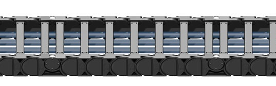 P4系列是一个新的发展阶段。独特的双滚轮设计大大降低了运行时的噪音和振动,从而增加了系统的使用寿命。相同节距的普通链节和轮式链节,进一步降低了拖链运行时可能产生的振动。