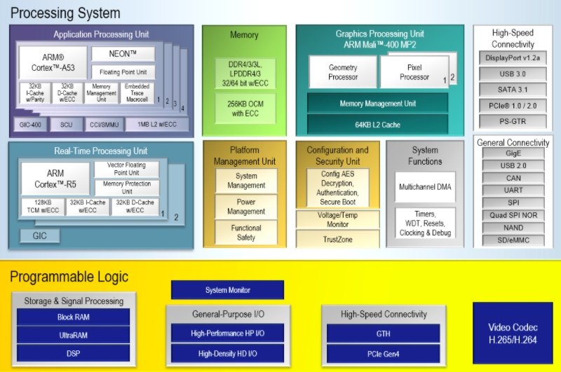 Zynq UltraScale + EV的框图。图片由Xilinx提供