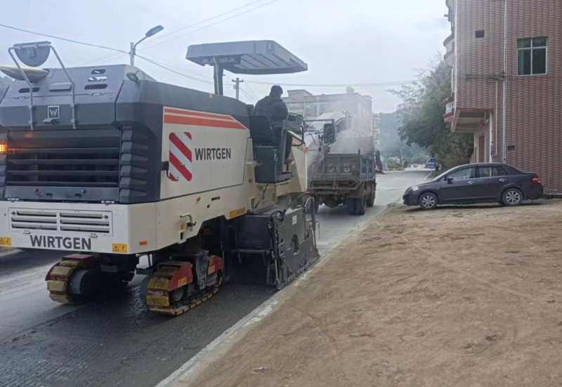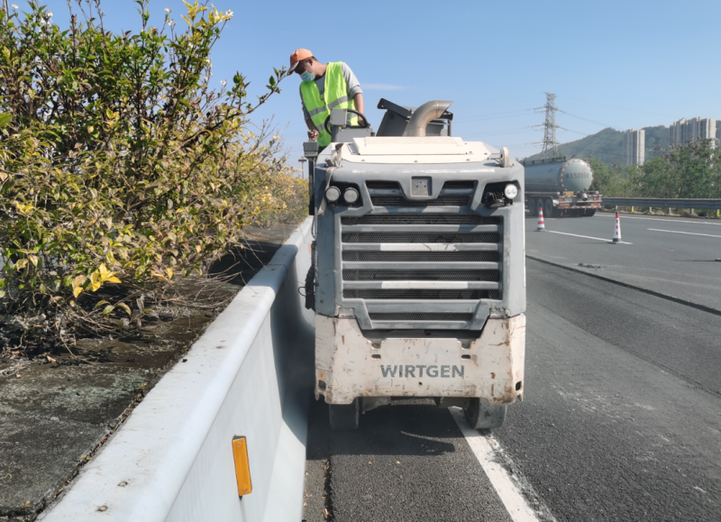 0.5 m 的路边缘安全带,采用一台维特根半米档铣刨机 W 50 H 贴边铣刨,漂亮地完成一次 ”铣刨快闪”