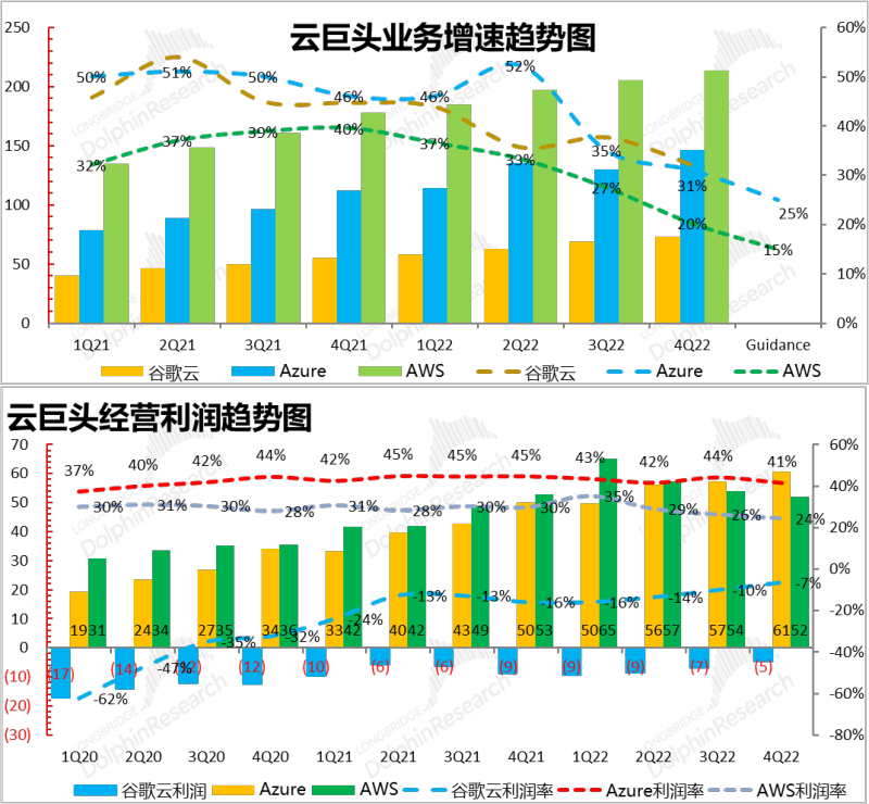 b. 收水之后,企业开始审视内部开支,三大云巨头的云业务成本企业降本增效时候重点审视的对象,增长放缓速度和互联网广告的下行速度也好不到哪里。