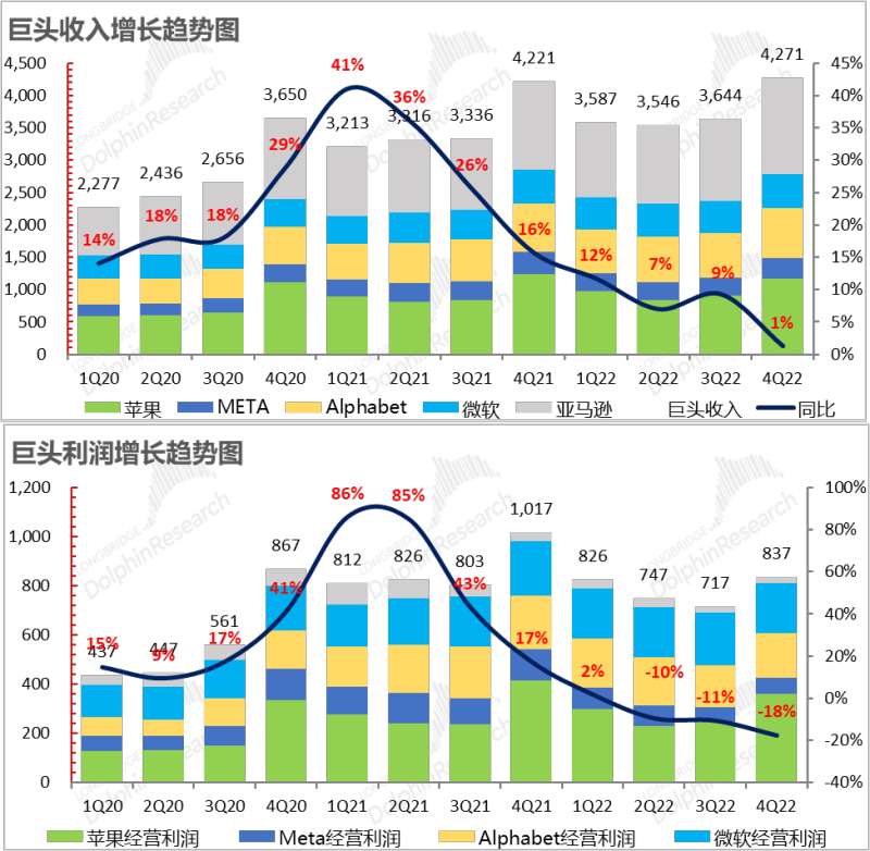 (3)不同于上季度之后,海豚君判断中对巨头的回避,在宏观“轻增长/浅衰退、M股波动向上”概率增加的情况下+个股“降本增效,对内改革”之后,巨头的机会已经可以开始关注起来。