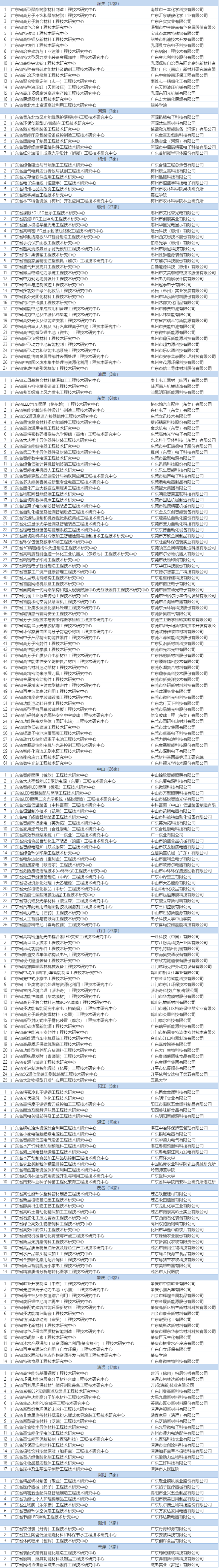 2月21日,广东省科学技术厅公布2022年度广东省工程技术研究中心认定名单,共877家上榜。广东省科学技术厅鼓励各地级以上市、县(市、区)人民政府根据区域创新发展需要出台相关支持政策,在资金、人才、税收、土地等方面给予支持,促进工程中心成为推进技术创新和成果转化的重要平台。