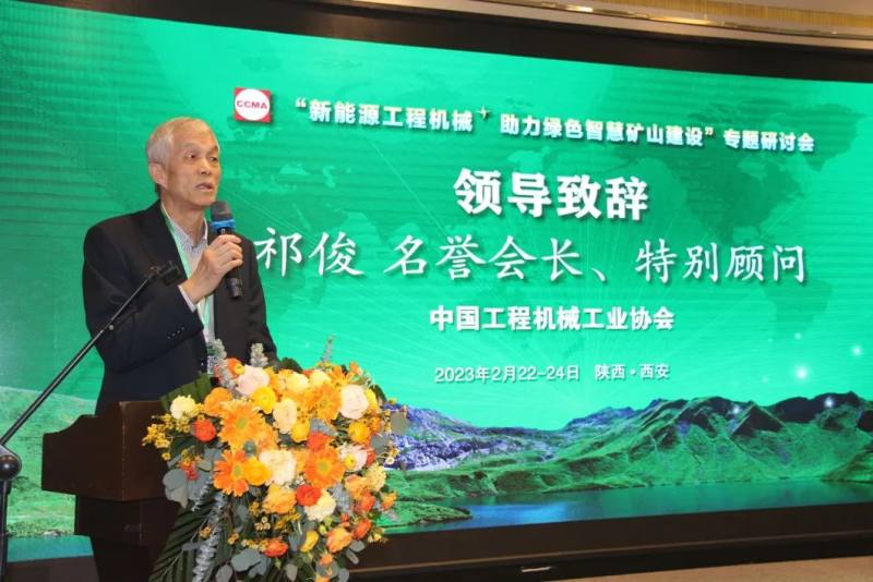 中国工程机械工业协会名誉会长、特别顾问祁俊发表致辞,致辞中祁俊说:“我国的工程机械发展取得了非常不错的成绩,国产装备可以满足我国基础设施建设的各项需求,这是非常自豪的成就。在新能源工程机械快速发展的今天,希望我们装备制造企业在绿色环保领域,走在施工单位需求端的前列,引领、引导施工单位的生产建设;同时在智能化、无人驾驶领域取得更大突破。”