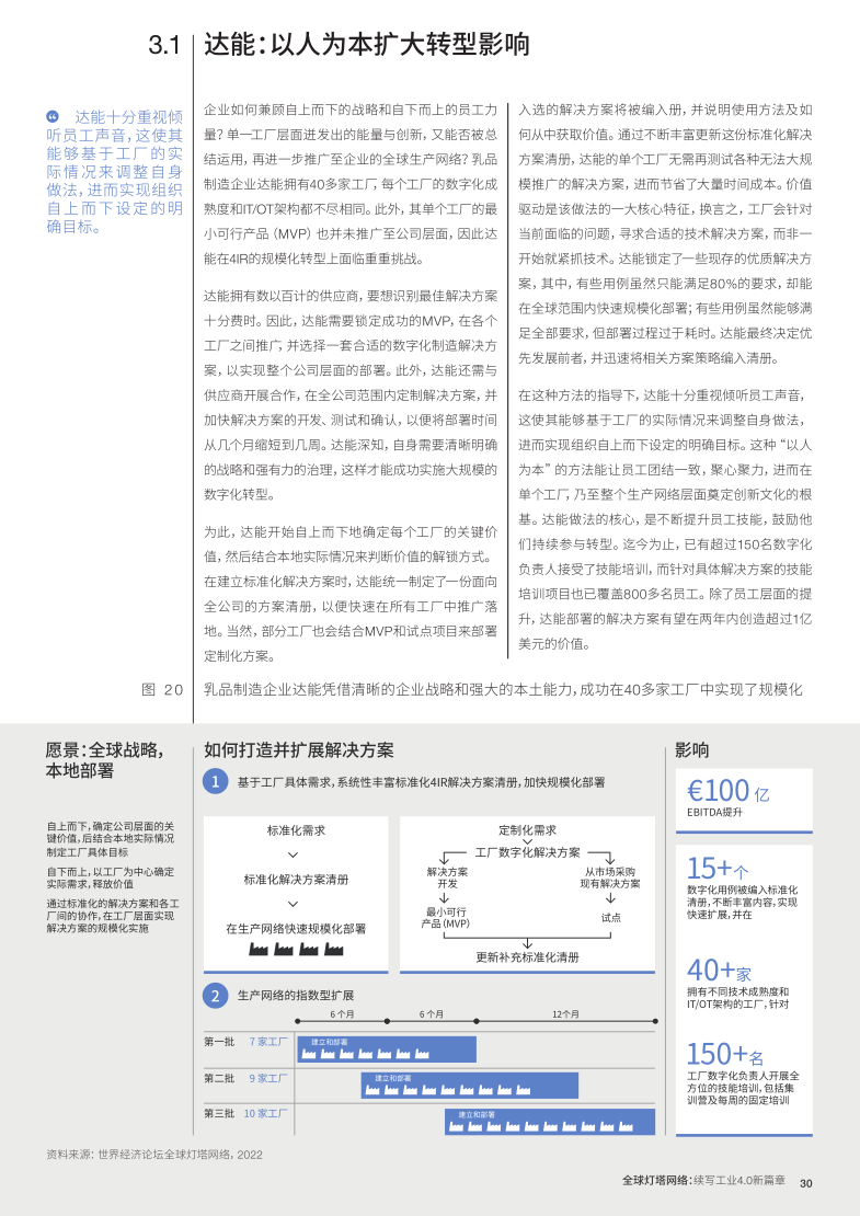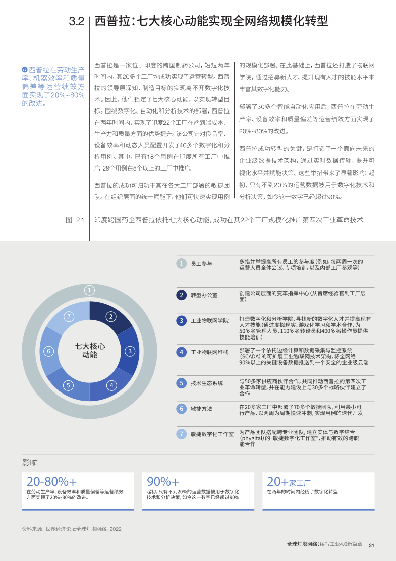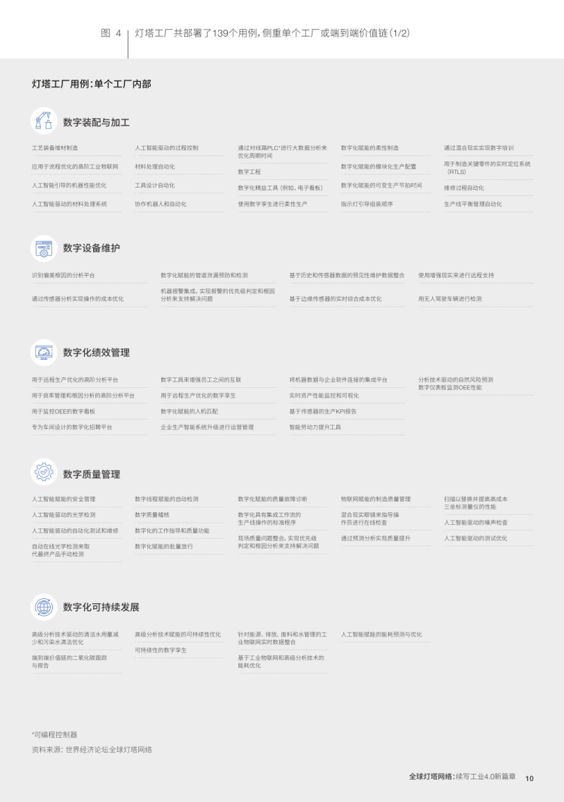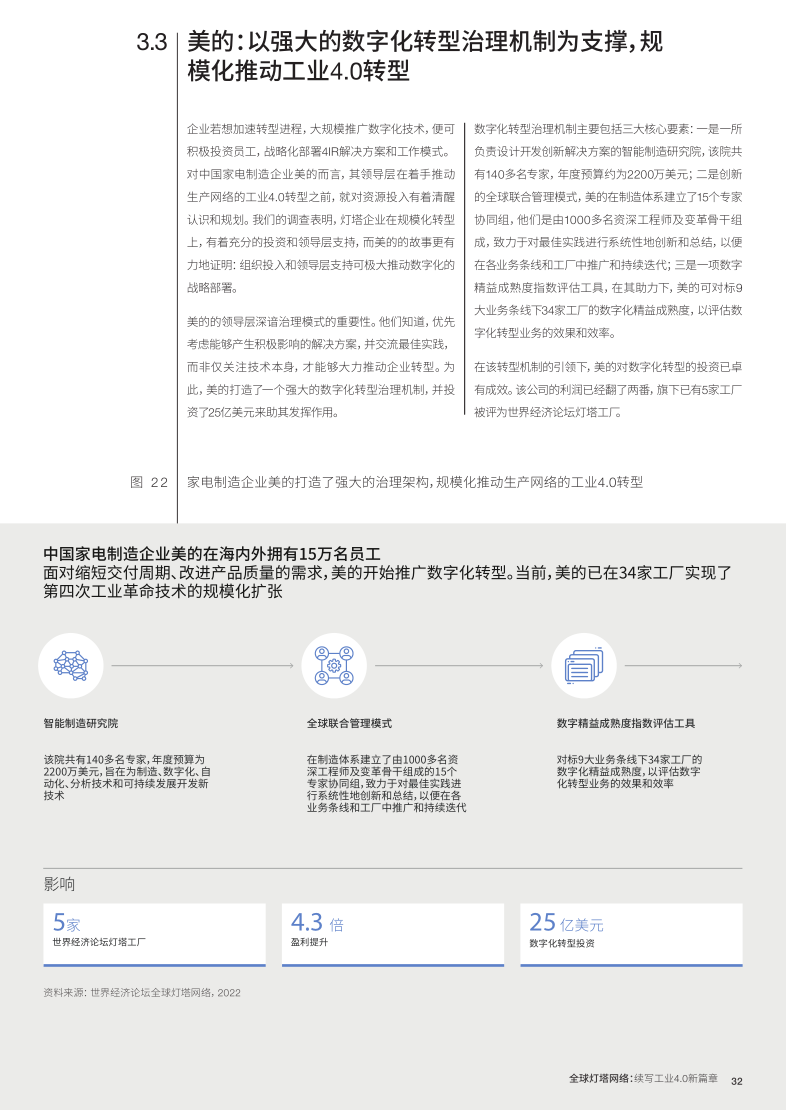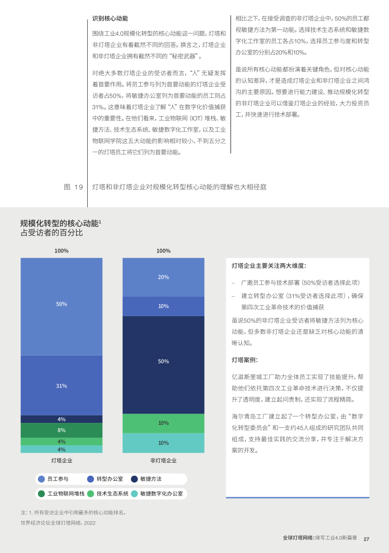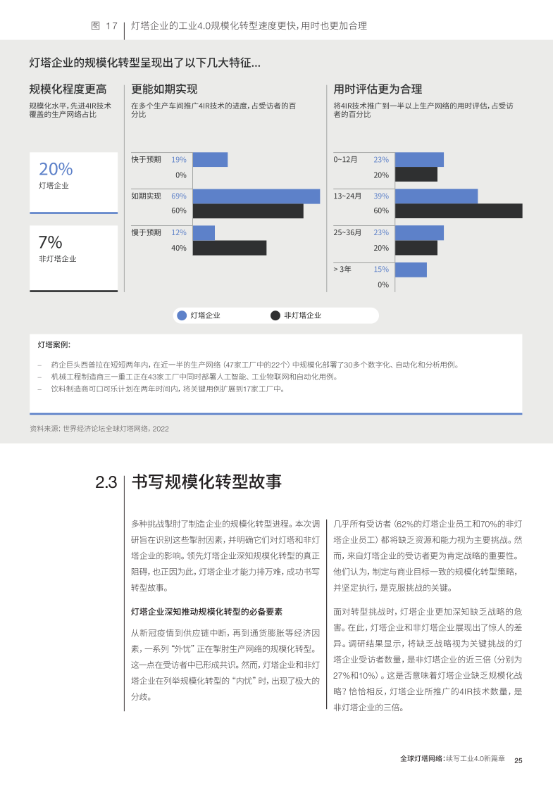 2023年的最新白皮书《全球灯塔网络:续写工业4.0新篇章》基于对全球多家制造企业的最新调研,深度提炼总结了全球132家灯塔成员的转型故事,展示了规模化转型的核心抓手,并详细分享了领先灯塔的成功案例。